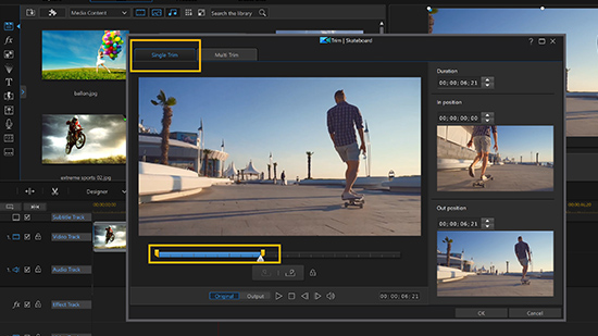 La fonction découpe unique vous permet de découper le début et la fin d'un clip vidéo. Faites glisser les curseurs des marques de début et de fin à vos positions préférées, puis cliquez sur OK pour terminer la découpe.