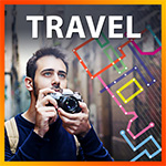 Travel-themed Express Layer Templates contain all the layer components you need to quickly design complex image compositions.